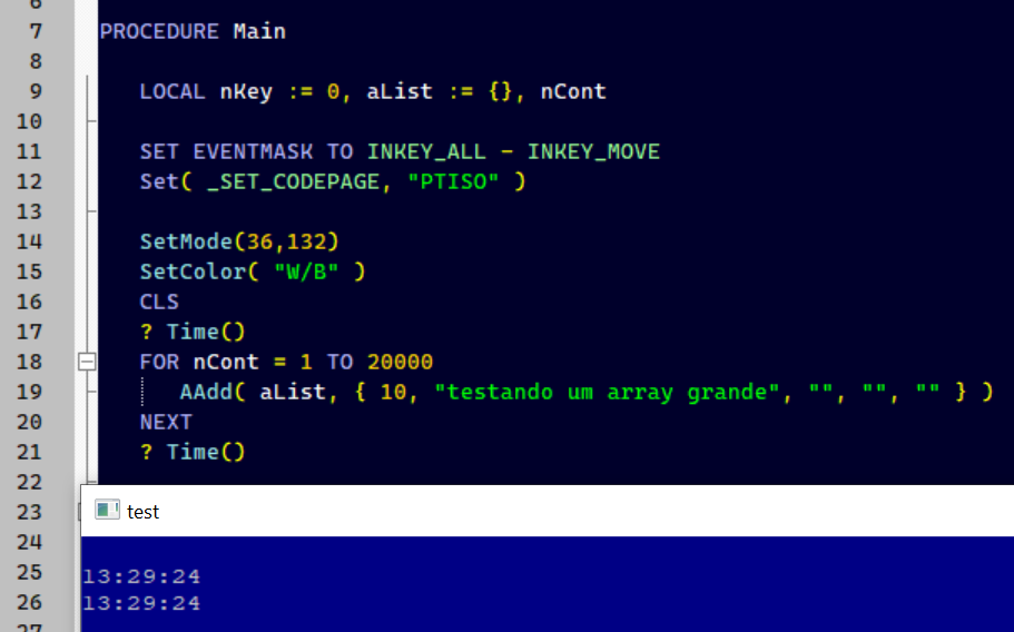 As rotinas de array do Harbour são escritas em C e são bem rápidas e eficientes.