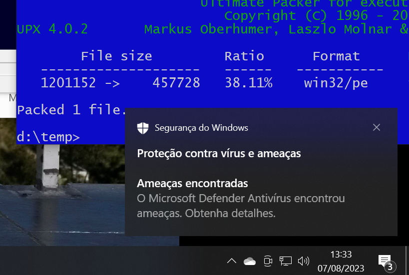 Fui fazer outro teste aumentando a quantidade, o antivírus da Microsoft bloqueou !!!!!