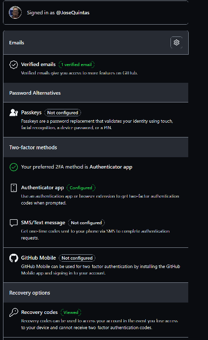 Depende de códigos de recuperação que você salva no computador, sem segurança.