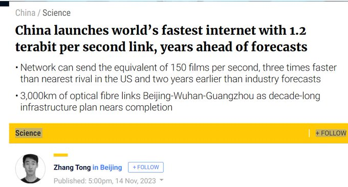 Claro, isso se aplica à rede backbone de fibra óptica que liga as cidades. Neste momento, esta é uma rede de 3.000 km que liga Pequim, Wuhan e Guangzhou.