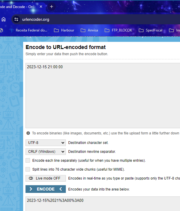 Converrte datetime para envio em URL