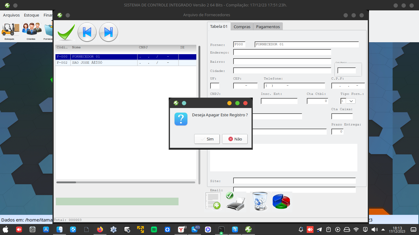 Aqui a mesma tela do windows sem mexer no código. (lógico) depois dos ajustes para ser compatível com Linux, não precisa ficar mexendo, ter dois fontes, é tudo um fonte só.