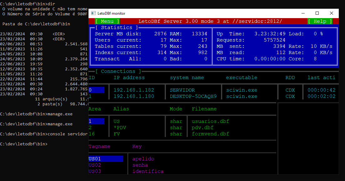 Segue os dois gerenciadores do LetoDbf serve para monitorar as conexões "penduradas" na rede e os DBF abertos.