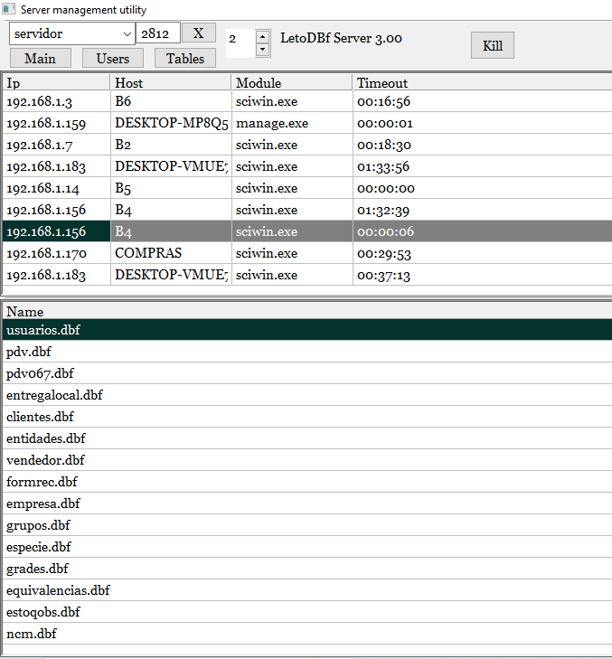 Tem como derrubar uma conexão (kill) Para não precisar desligar o servidor/serviço do Letodbf quando tem um arquivo dbf travado.(aberto em modo exclusivo) ou uma conexão da rede perde e não deixa abrir o DBF.