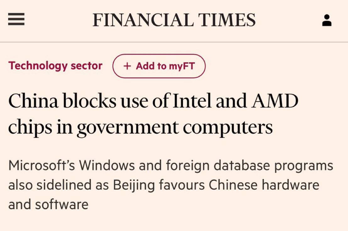 AMD e Intel bloqueados no governo Chinês.