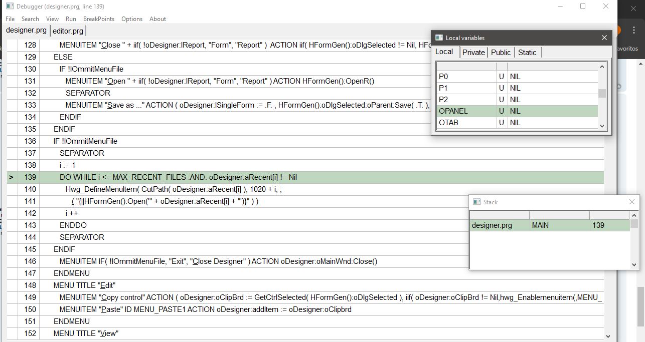 Alguém sabe usar o debug da hwgui 2.23 ?