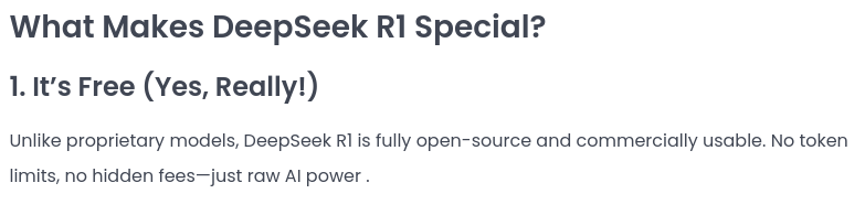 DeepSeek R1 é *o* melhor modelo disponível agora. Está no nível do o1, mas você pode usá-lo de graça, e é muito mais rápido.