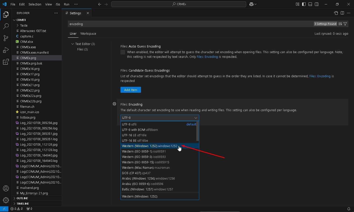 Você também poderá criar "regras" para ele fazer a descoberta - nunca usei mas parece promissor, veja "Candidate Guess Encoding" -> "Add item": Vai abrir uma lista de encodings para você selecionar, então sempre irá abrir e salvar naquele específico a menos que você faça alteração manual em um arquivo específico como já vimos anteriormente: Espero que estas dicas lhe ajudem. Have a good coding day!