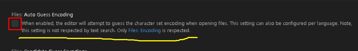 1 - o guess encoding (auto detectar a página de código) nem sempre funciona. Ele usa os primeiros 512 bytes do arquivo na tentativa de detecção. O índice de acertos é baixo e a recomendação é deixar desativado.