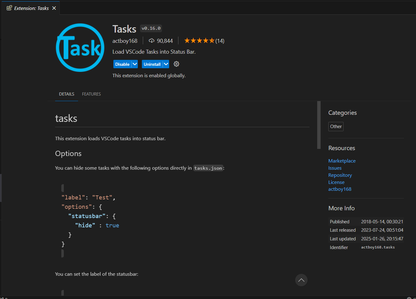 Instalei também uma extensão para aparecer a task na tela inicial, segue link: