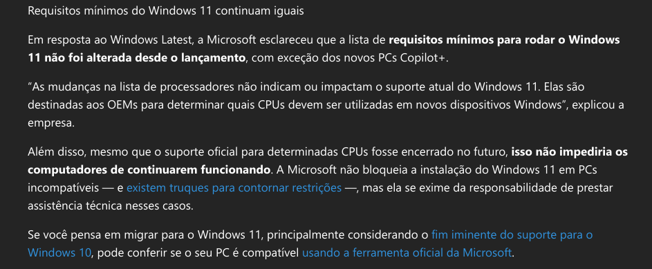 Microsoft remove suporte oficial do Windows 11 24H2 em CPUs Intel de 8ª, 9ª e 10ª geração