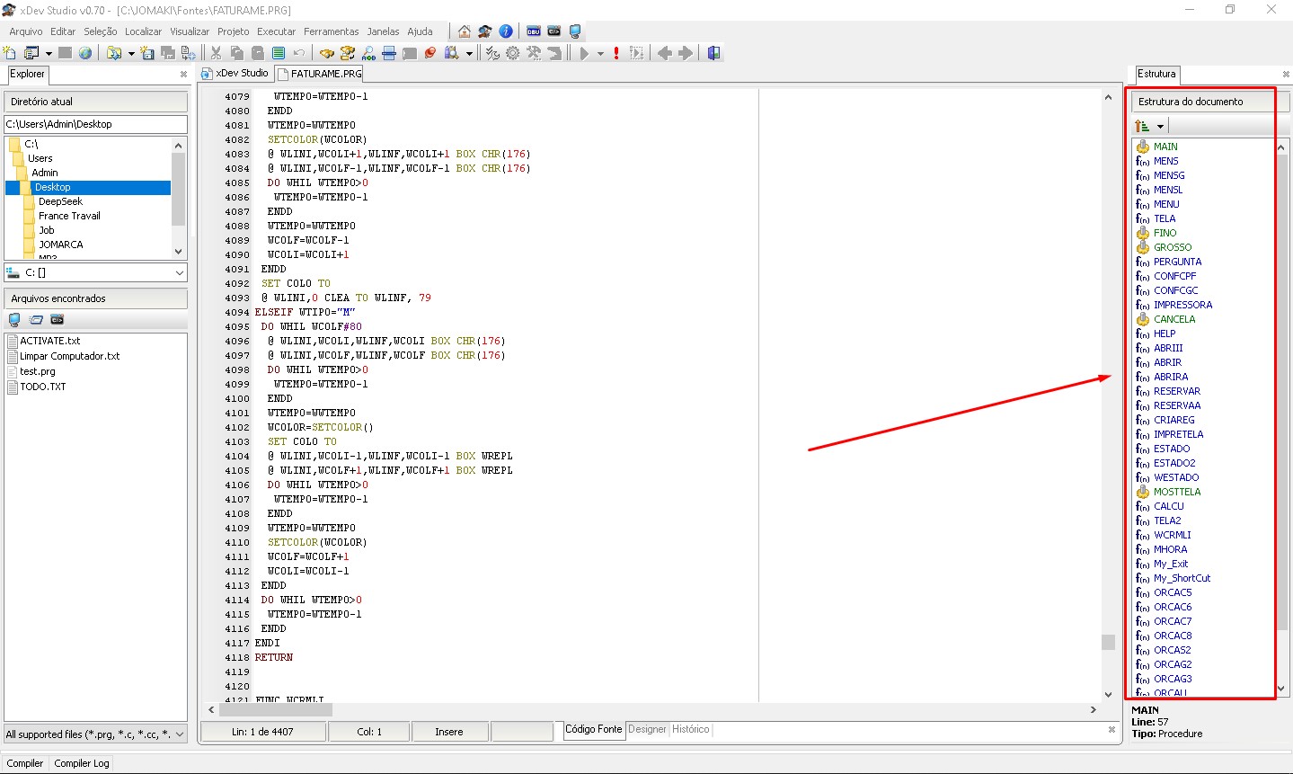 Nos tempos do clipper eu tinha um programinha (função em C) que pegava o main e destrinchava para se saber a hierarquia de cada um dentro do main.