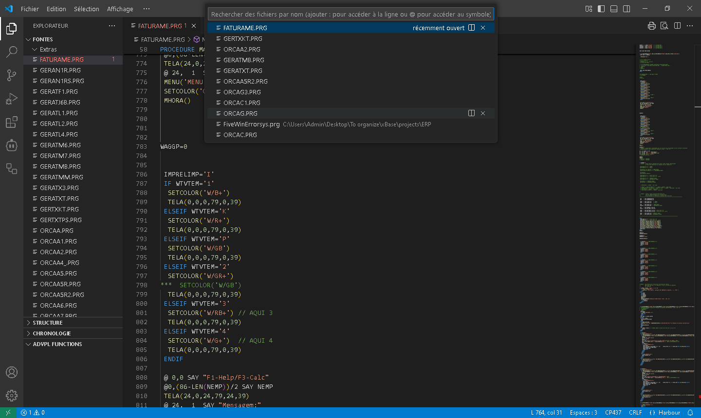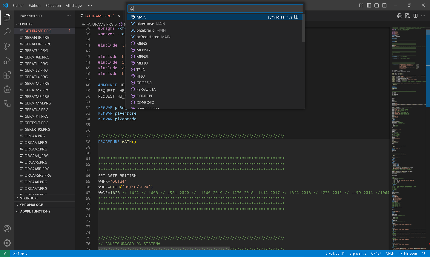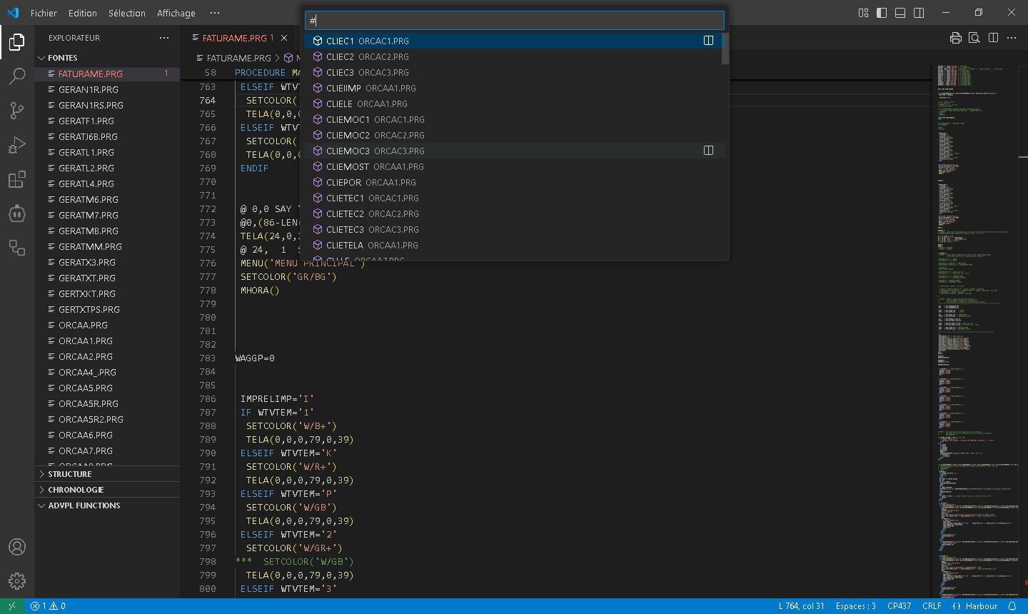 Tem ainda o próprio VSCode que tem esta funcionalidade usando a extensão Harbour & xHarbour do Antonio Pericone.