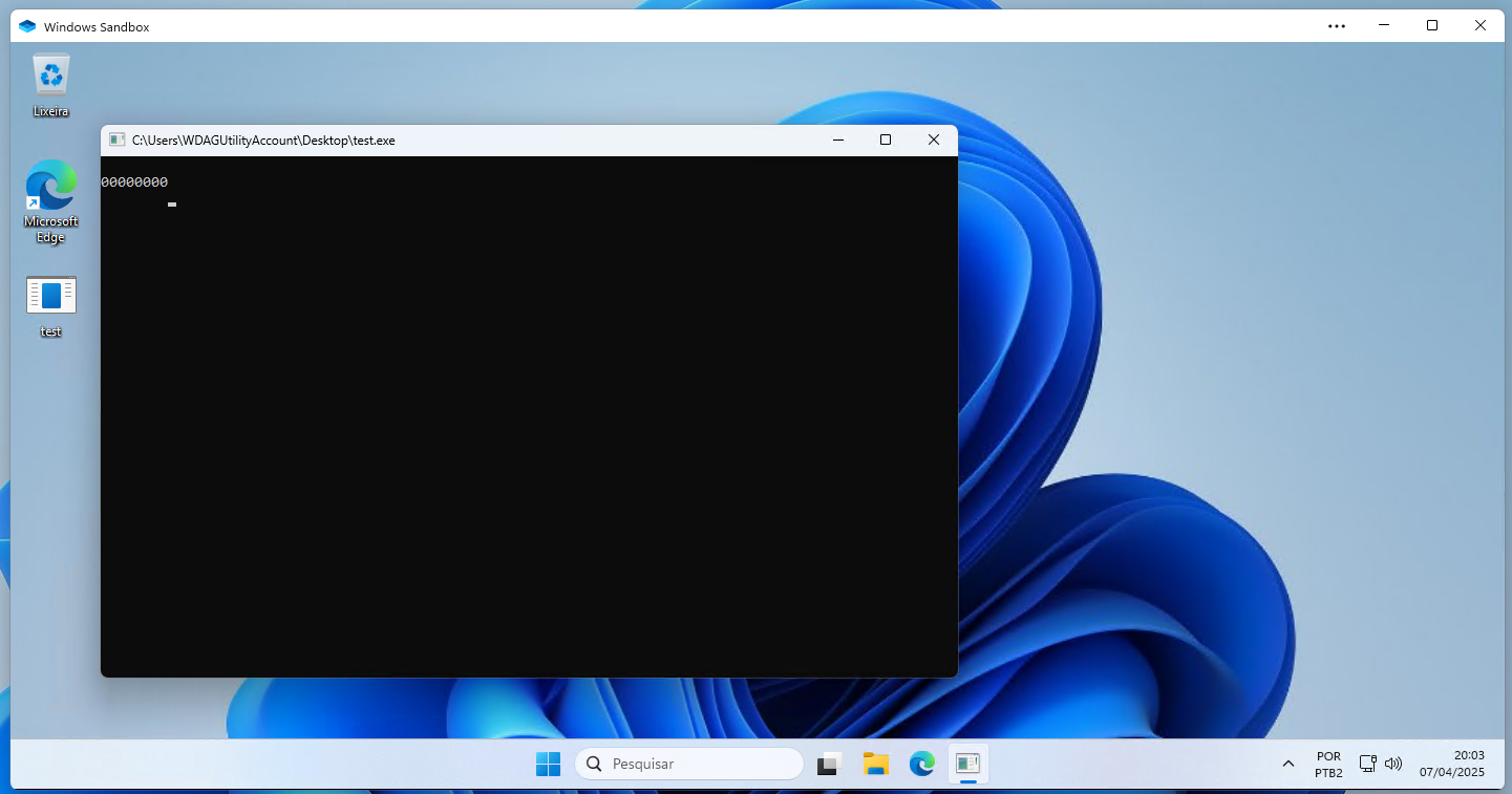 Rodei o programa 'test.exe' na caixa de areia do windows 11 pro.