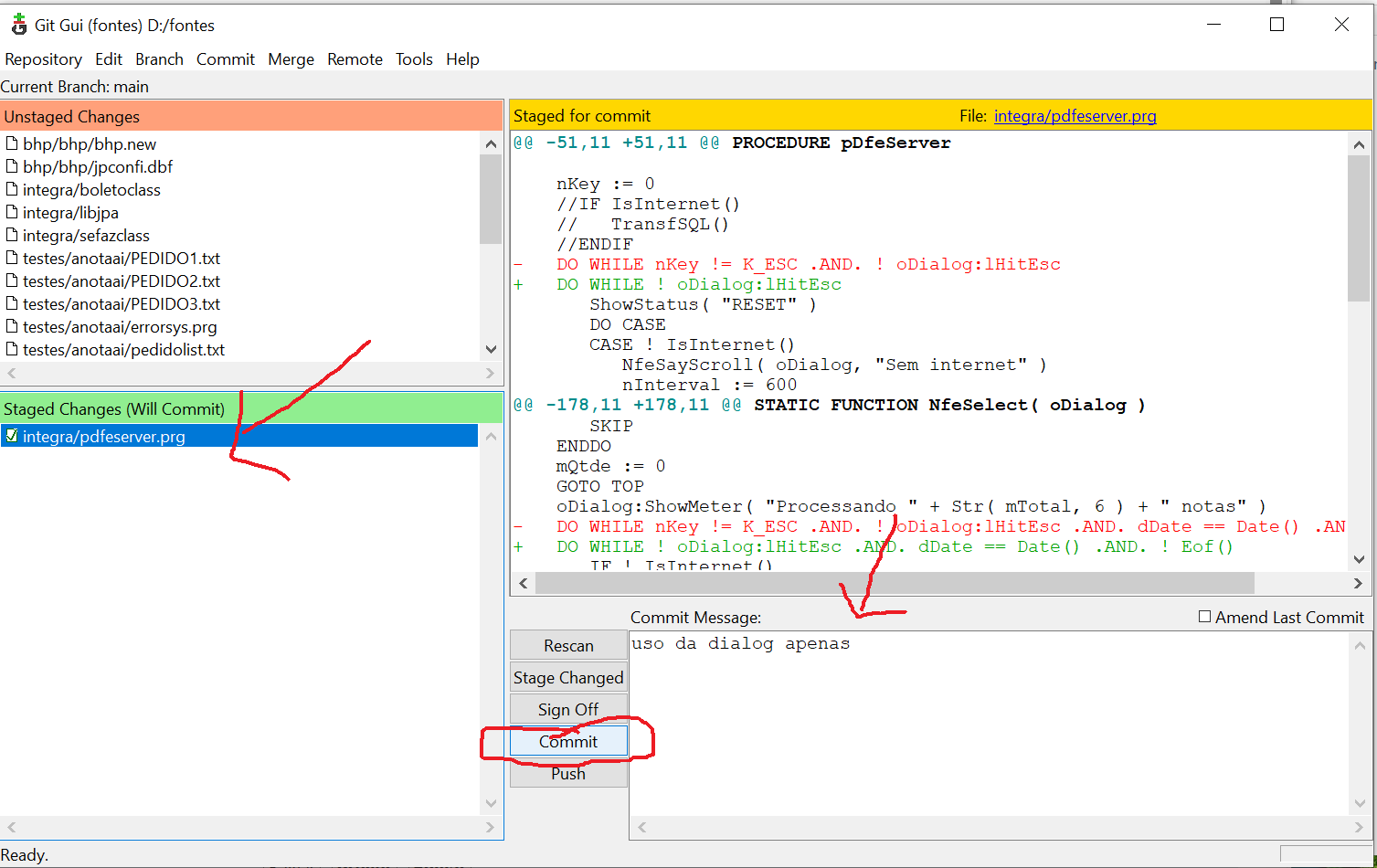 Agora a outra parte, do VB6: Marquei, coloquei texto, cliquei em commit pra salvar.