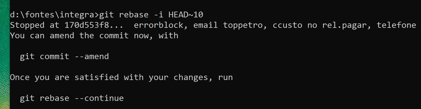 Posso mudar a ordem, apagar alteração (drop), juntar alterações (squash), ALTERAR A ALTERAÇÃO (edit)