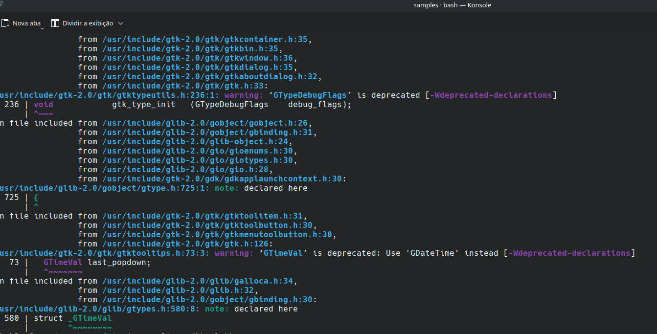 Esses avisos são da hwgui. E mais abaixo tem outro erro.