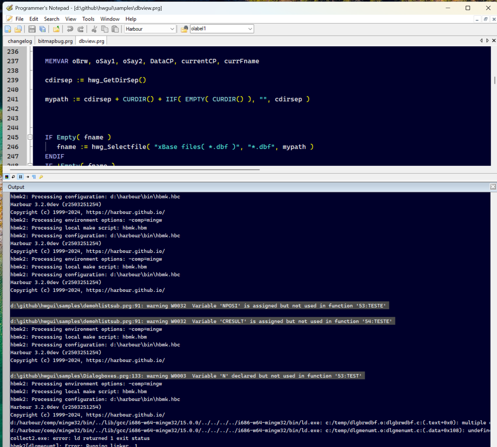 Alguém pode compilar pra ver se avisa, se depende da versão do harbour ou algo assim