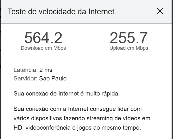 A rede doméstica oferece velocidades de download de 9.834 Mbps e 1.008 Mbps, com uma latência estável de apenas três milissegundos, o que permite o rápido download de filmes.