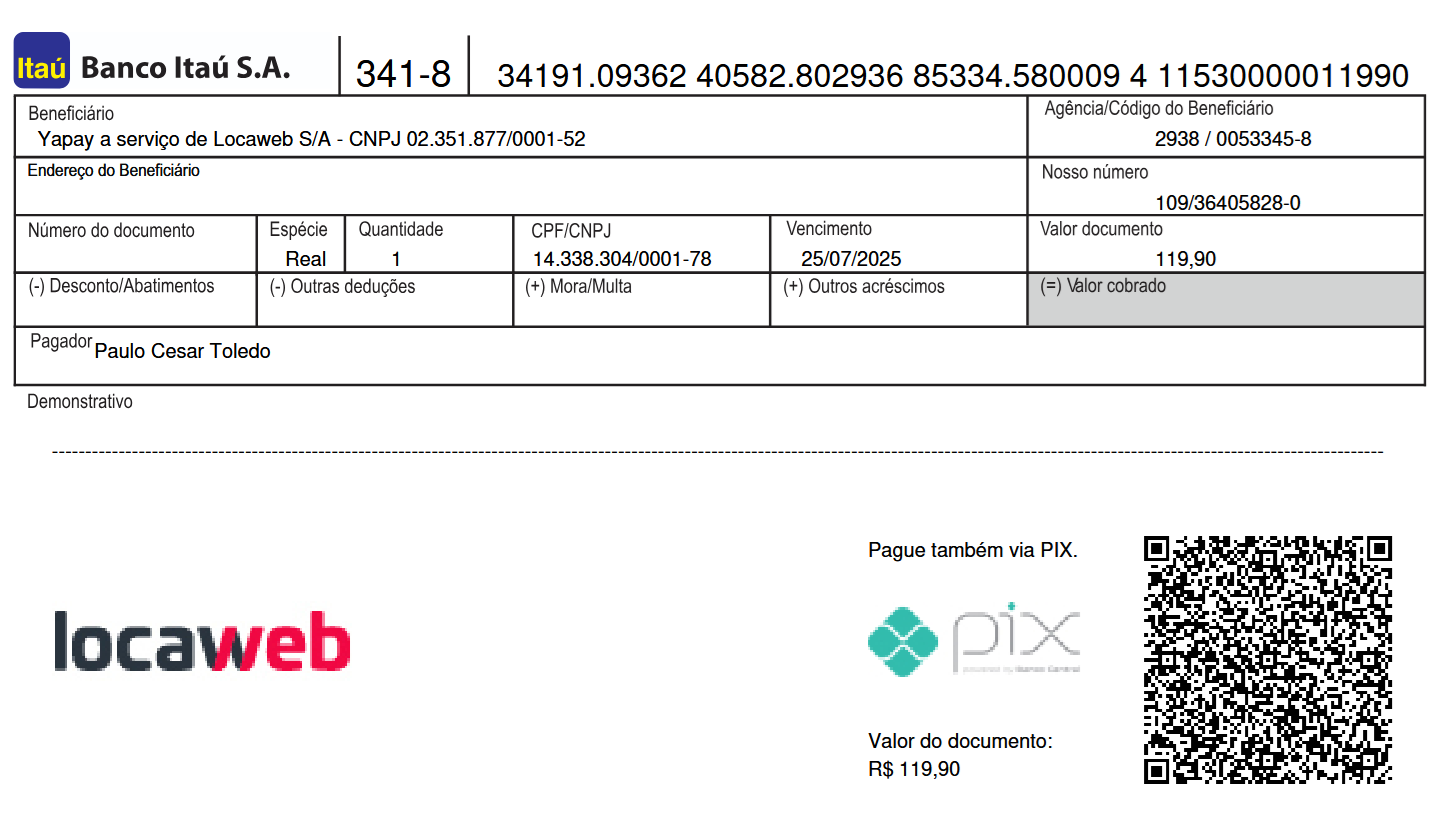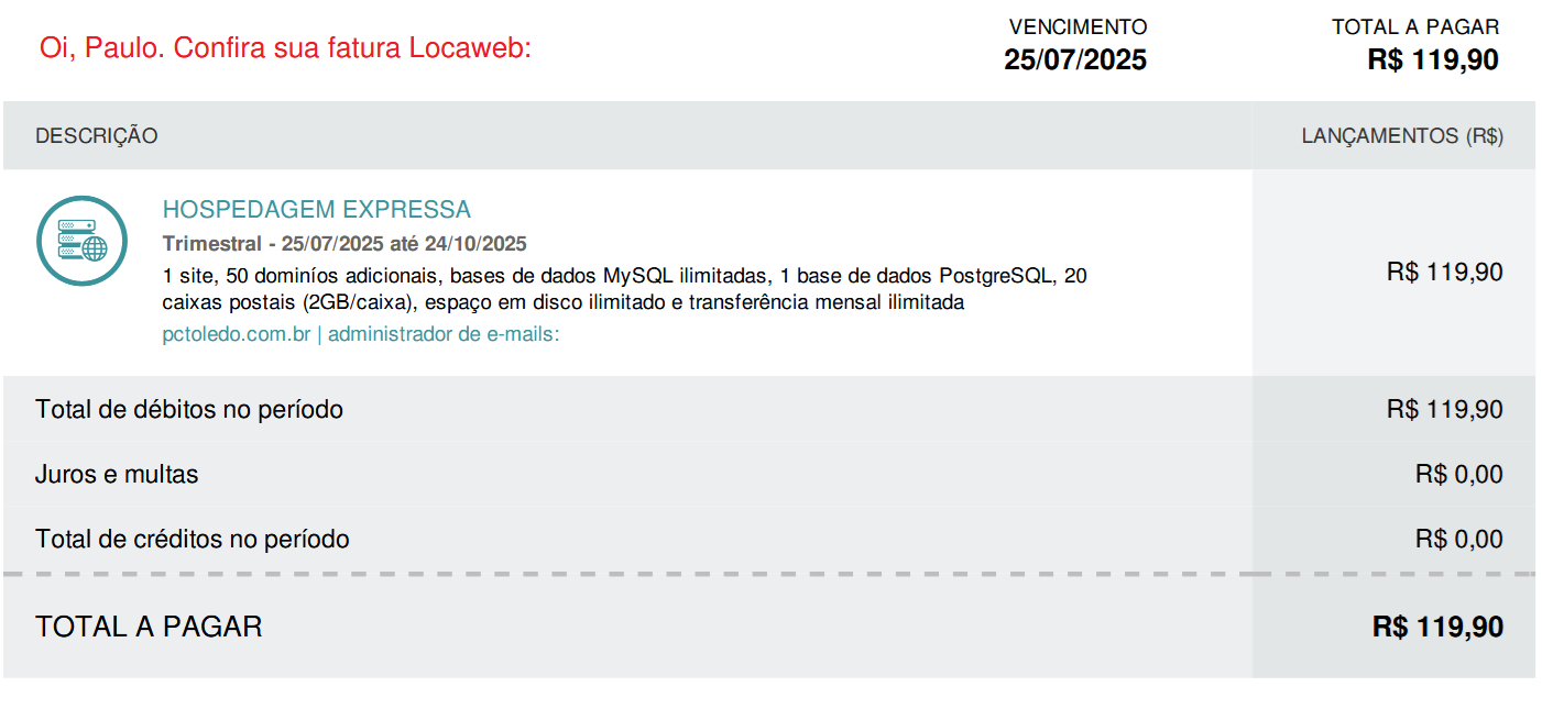 // A sua fatura Locaweb já está disponível!