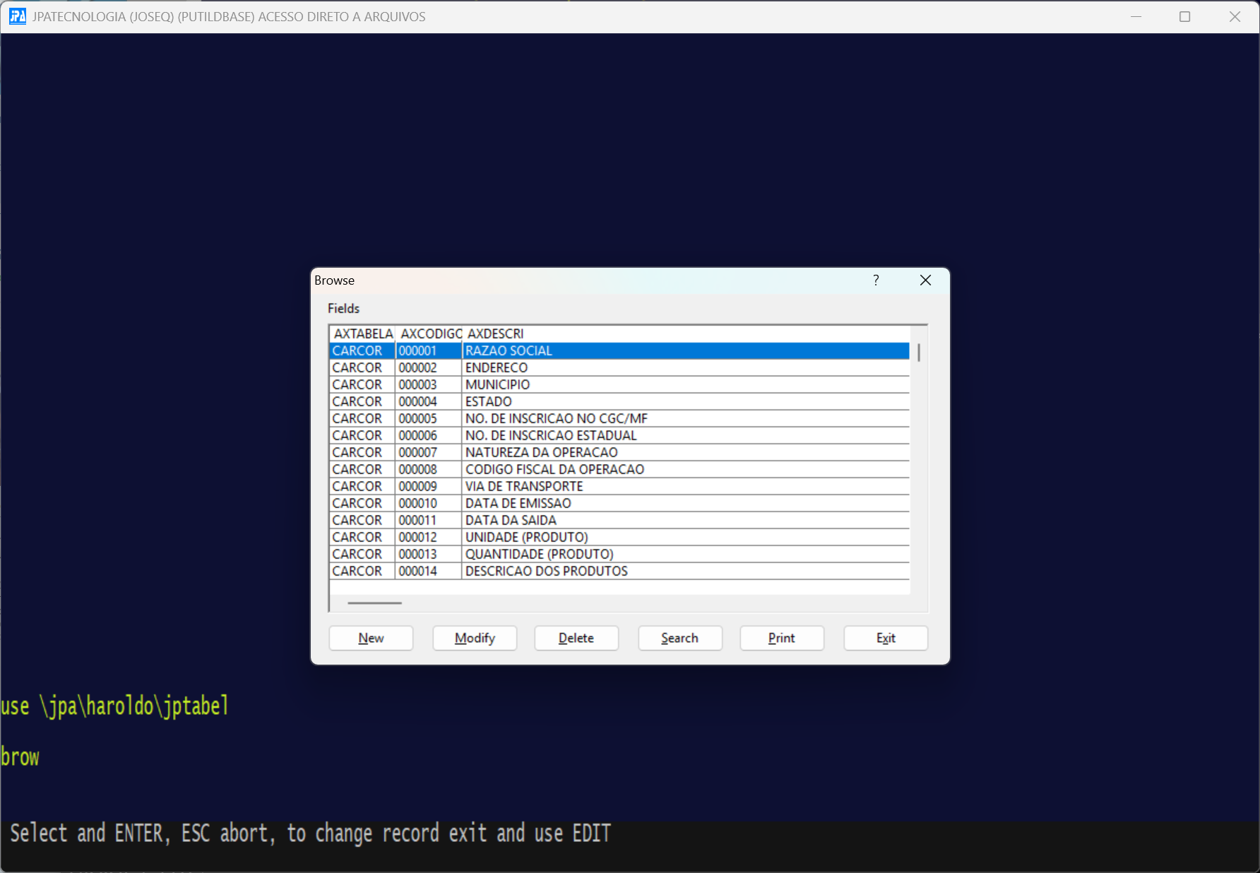 Mensagem( "Select and ENTER, ESC abort, to change record exit and use EDIT" )
