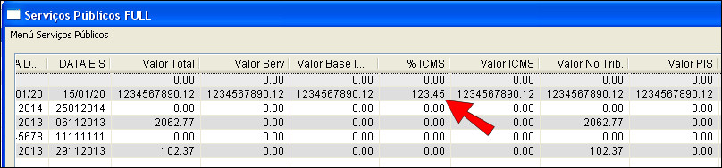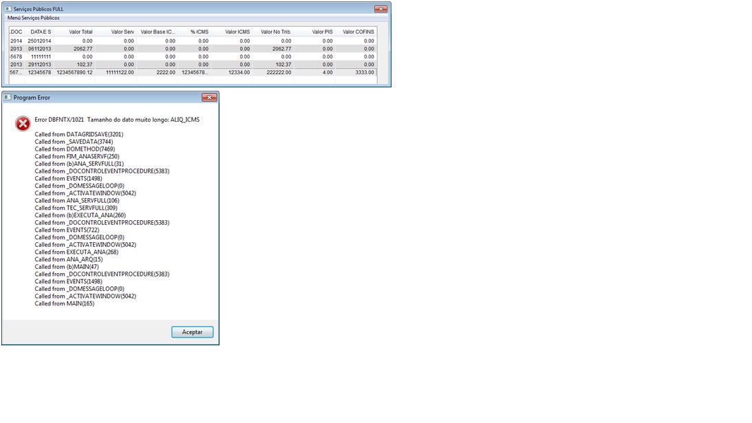 Para fazer o teste, tem que ir a: Analisar – Editar dados – F9 (você vai ver que não muda nenhum formato dos campos) e vai controlando a quantidade máxima de cada um, se você escolher F10 (você vai ver que o sistema deixa preencher o campo % ICMS com mais de 3 inteiros) e escolhendo do Menú - Esc – Gravar e Sair da o error.