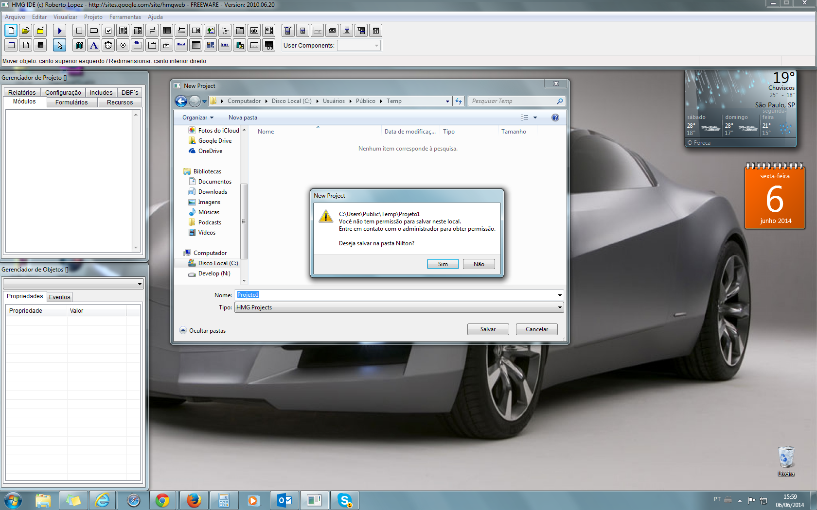 Olá amigos, finalmente resolvi migrar uma aplicação em Clipper 5.3b para Harbour (antes tarde do que nunca, rs), instalei o HMG 3.0.35 e de cara ao criar um Novo Projeto o HMG não tem permissão para salvar em nenhuma pasta, nem na pasta publica (Users\Public)