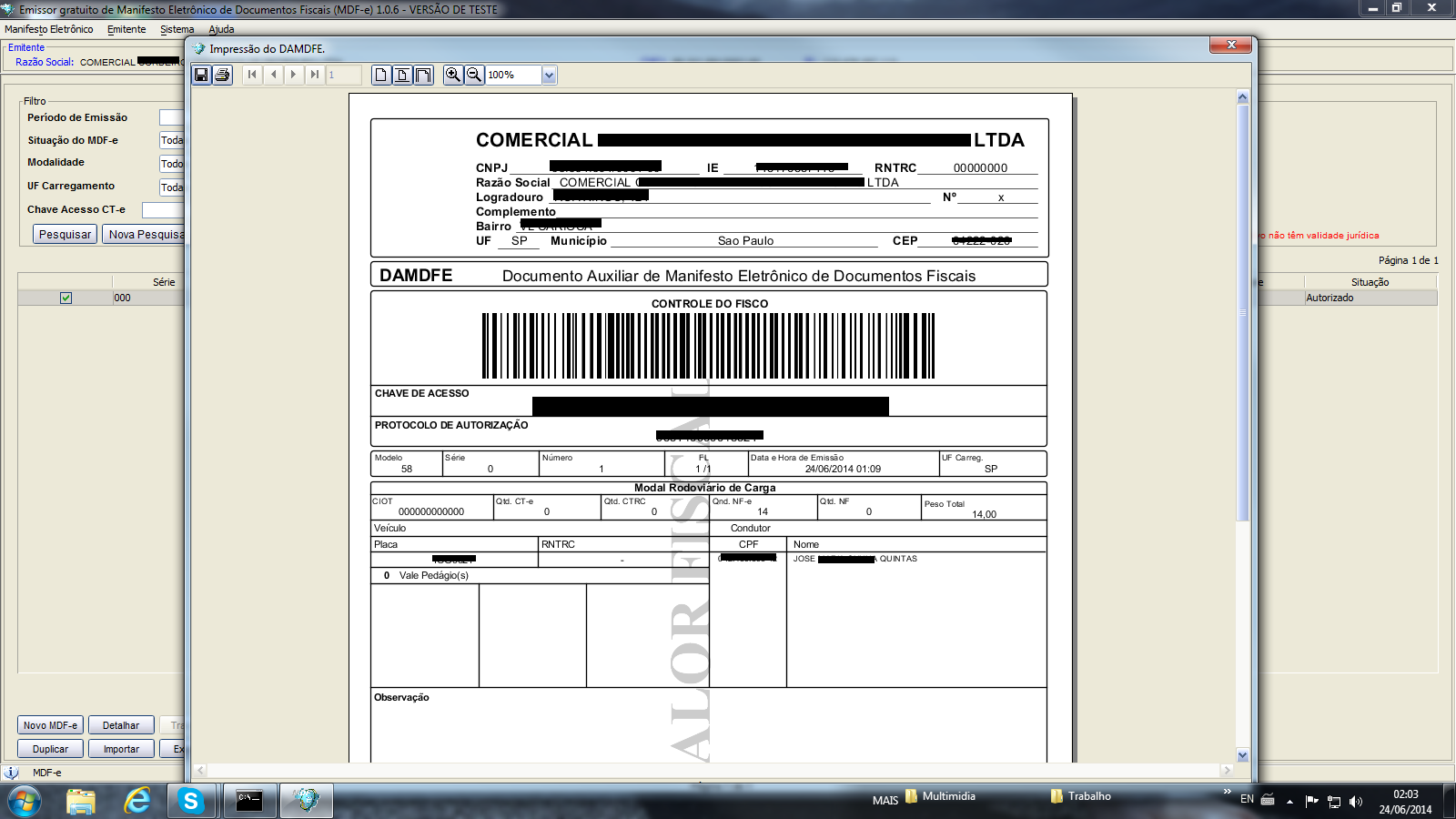 comecei a usar o MDFe da Sefaz dia 1/7. foi tudo ok até dia 5/7 sabado...