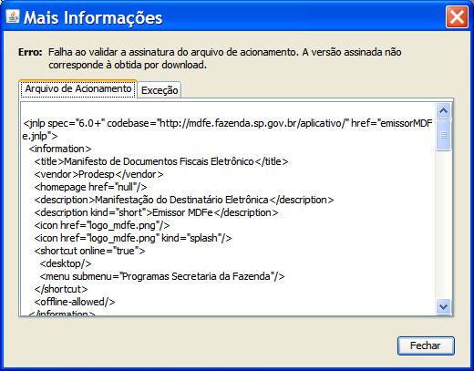 JNLPSigningException[Falha ao validar a assinatura do arquivo de acionamento. A versão assinada não corresponde à obtida por download.]