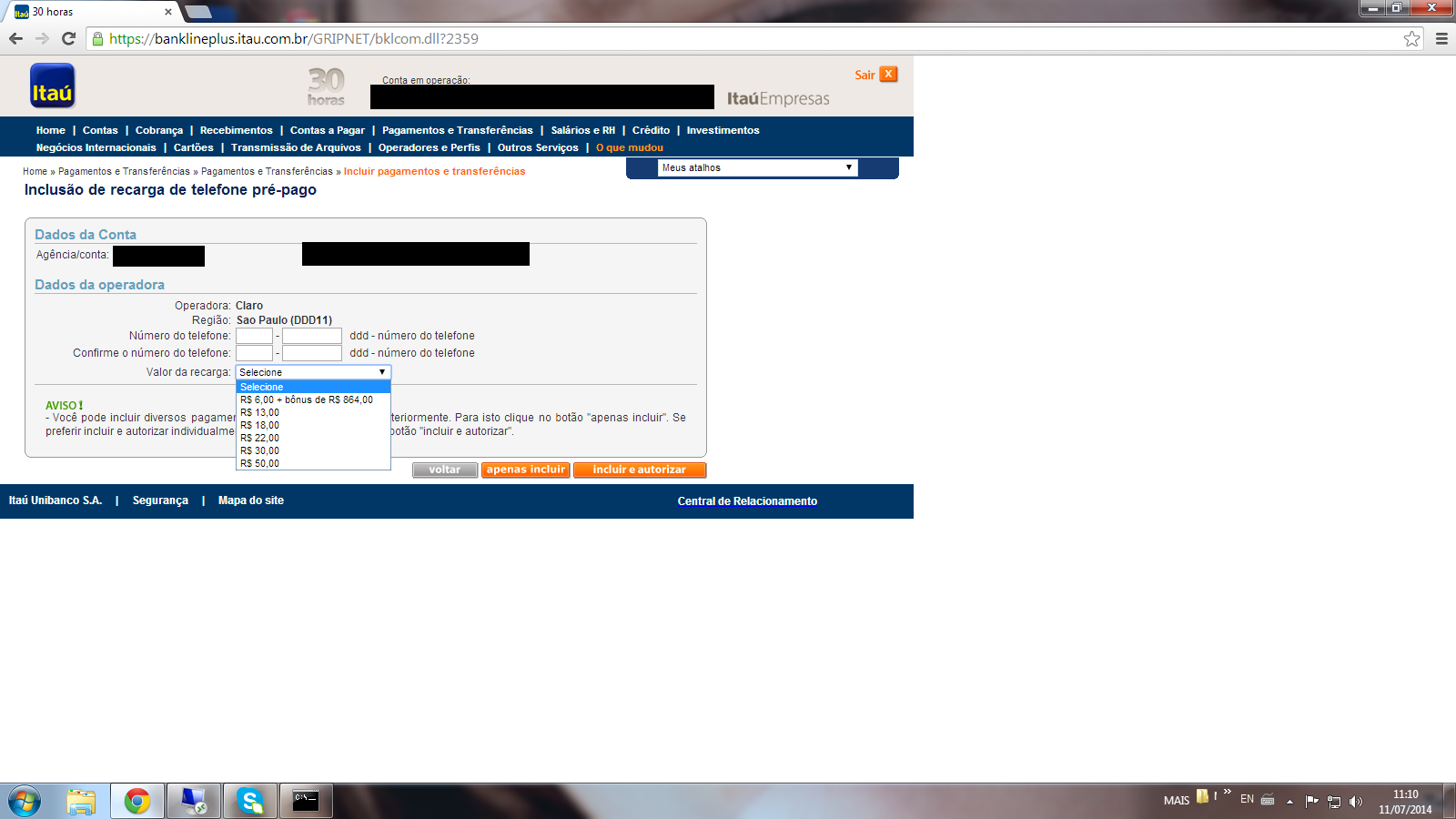 Ligando ao Banco Itaú, pediram pra pegar informações com a Claro