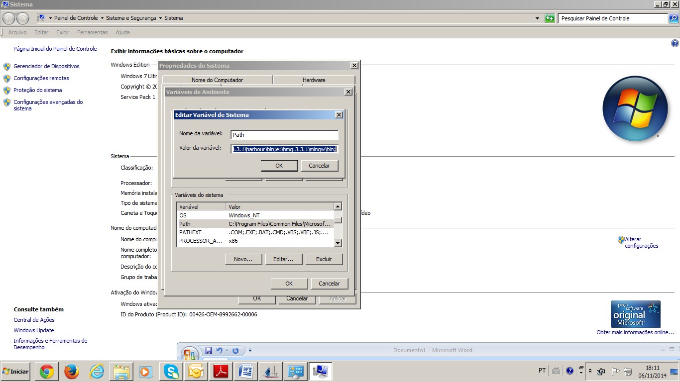 Depois disso em computador clicando com o botão direito do mouse, va em propriedades, configurações avançadas do sistema, variáveis de ambiente, variáveis do sistema.