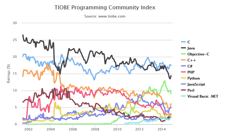 The index can be used to check whether your programming skills are still up to date or to make a strategic decision about what programming language should be adopted when starting to build a new software system. The definition of the TIOBE index can be found here.