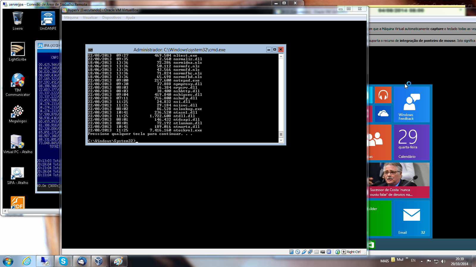 O acesso a cada máquina virtual no servidor era feito via MSTSC e para a manutenção do servidor também usava o VNC.