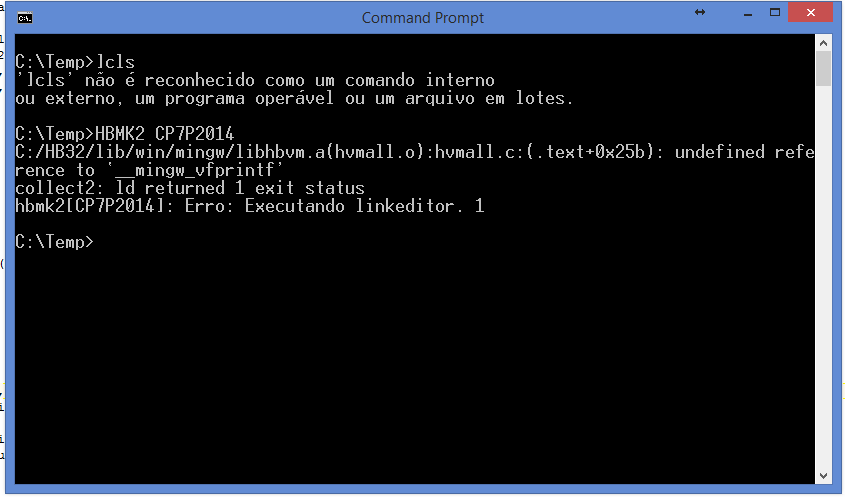 Não dá erro de linha algum, somente não termina a compilação no Windows 8.