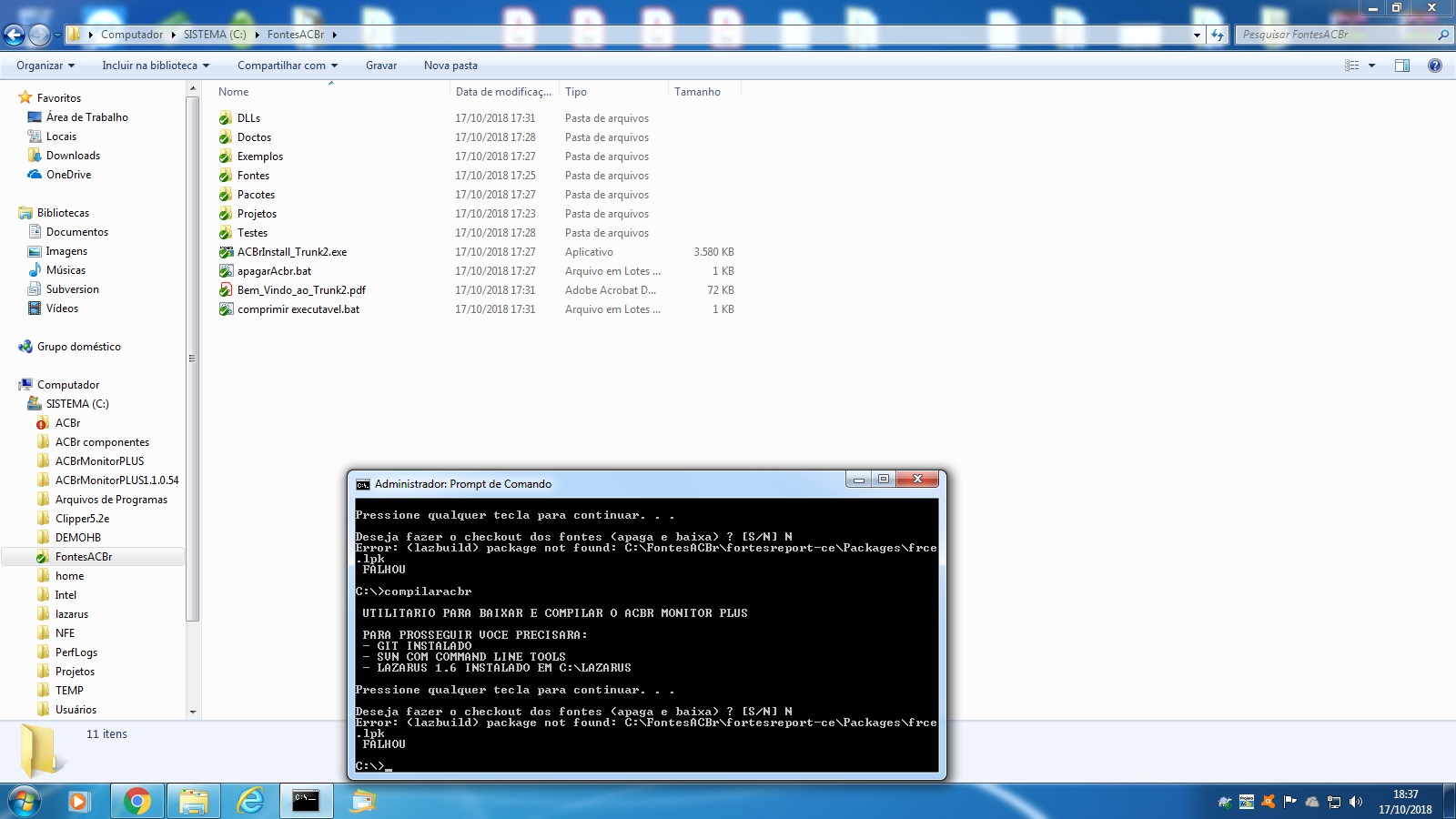 Hoje fui compilar o ACBr com o arquivo ".bat" e estou tendo esta msg de erro: