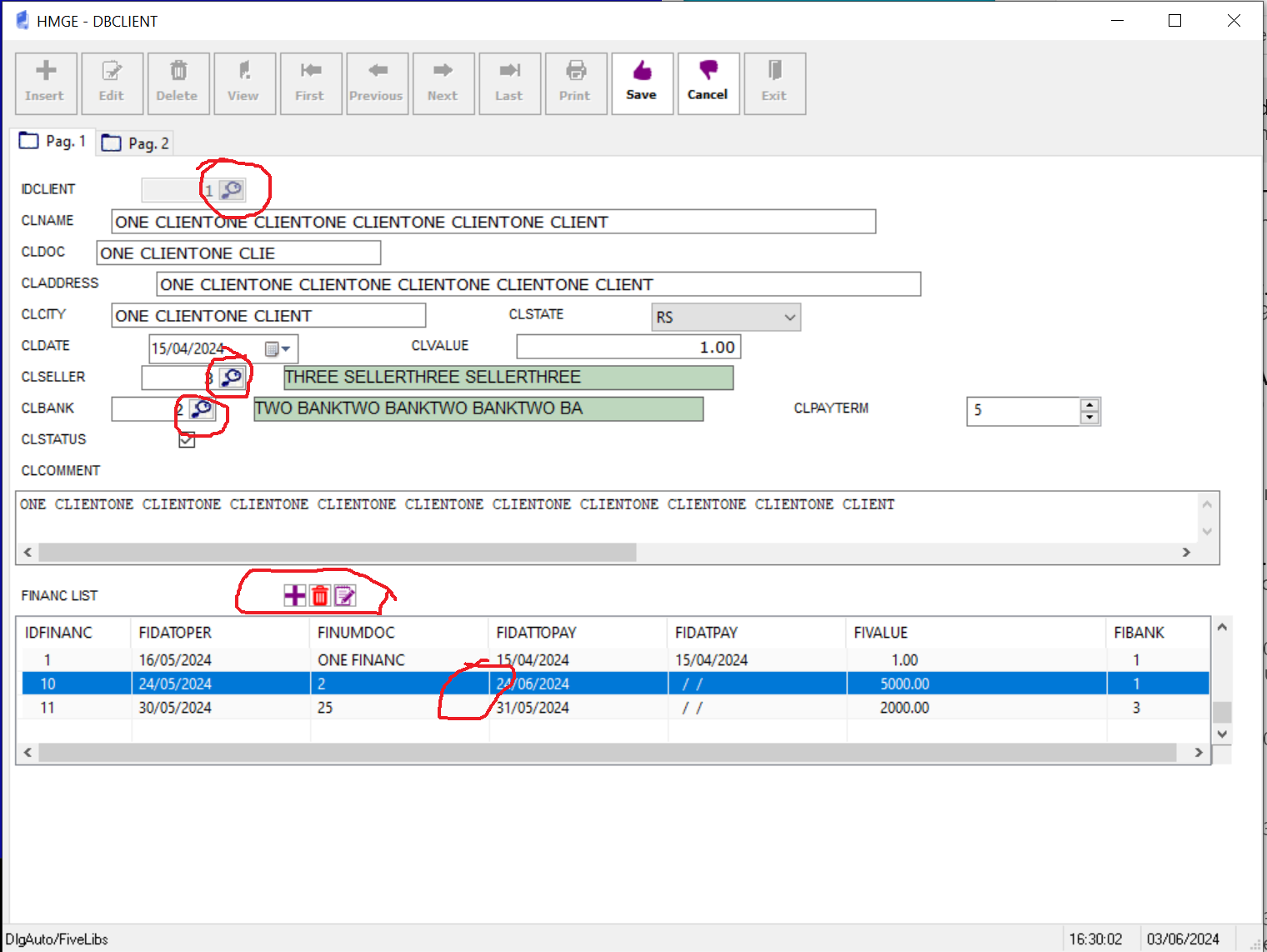 - Ainda não coloquei o evento de clique/ENTER nos browses de pesquisa