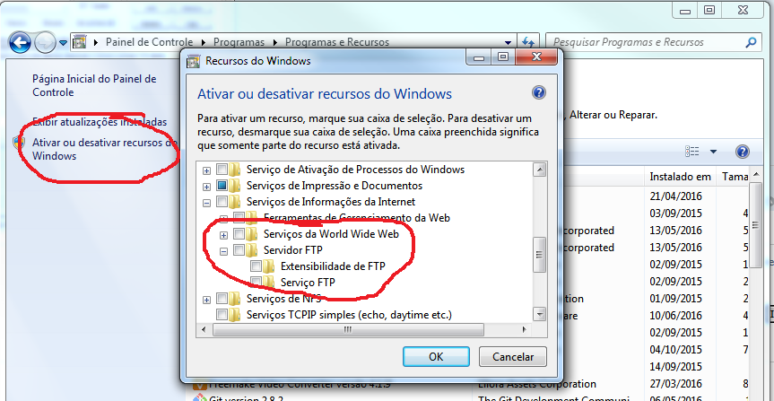 Na mesma imagem que mostrei sobre o FTP Windows, tem sobre o servidor HTTP Windows, e ASP, e etc.