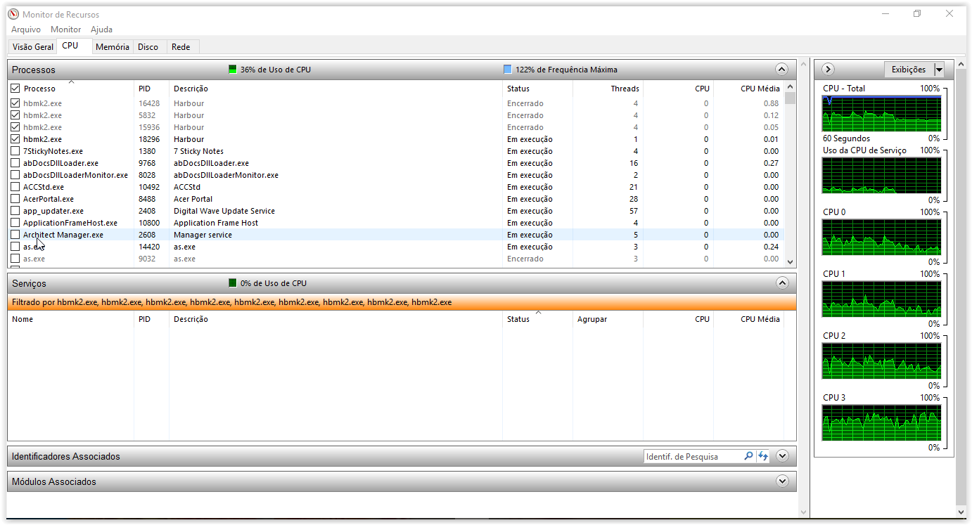 Observem que o executável demo.exe utilizou 4 threads ?????