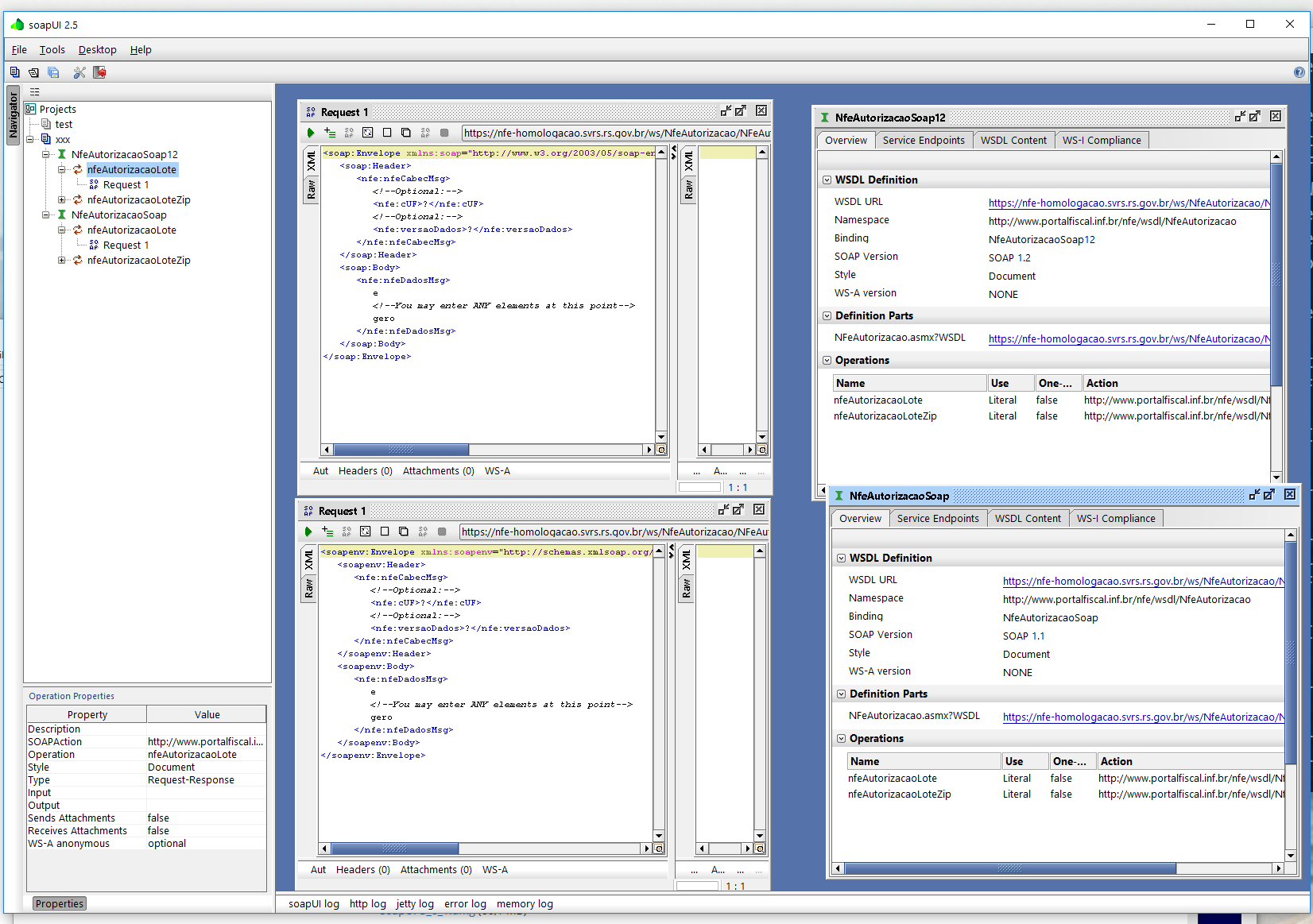 Quanto ao SOAPUI, vou ter que esperar algum webservice diferente.