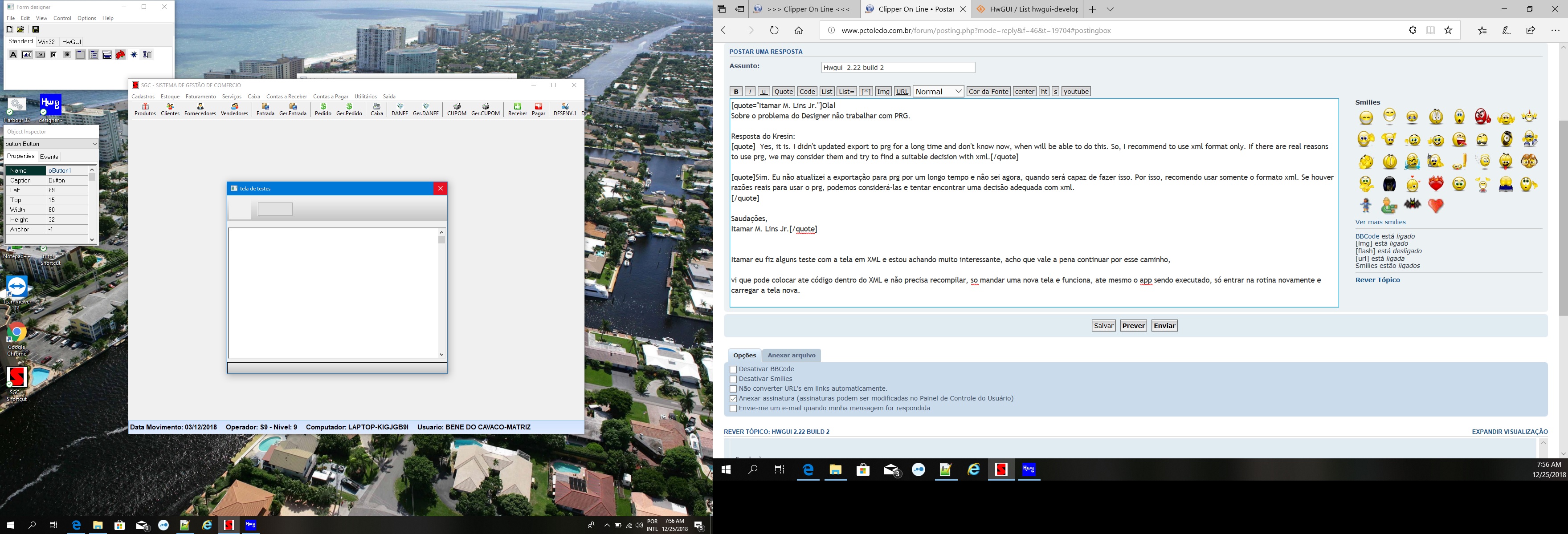 HARBOUR 3.2, HWGUI 2.23 B7, SEFAZCLASS, PDFClass, ADO + MariaDB/MySQL, RMChart, Python + FASTAPI , Android Kotlin