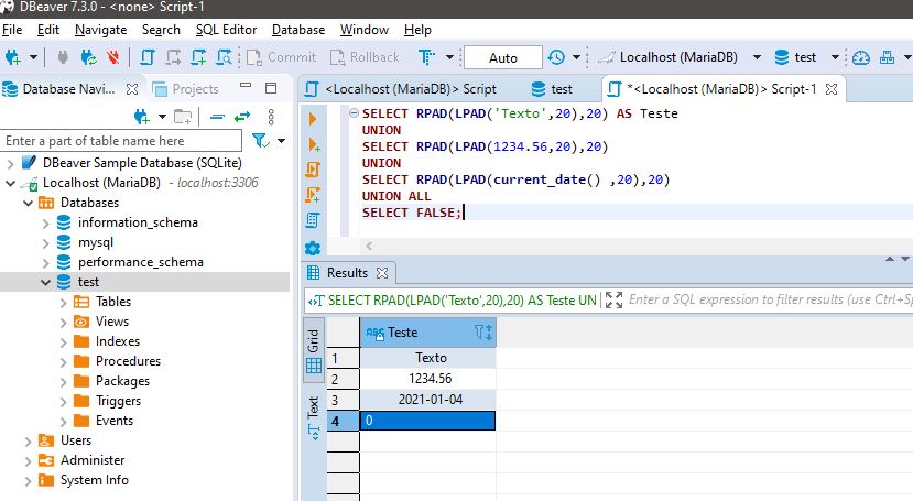 Não sei qual banco usa mas creio que todos tenham funções semelhantes de manipulação de strings. Até o DBF tem. Note que PadC() é uma combinação de PadR() com PadL() (ou vice-versa), todas estas funções xBase. Nos bancos de dados relacionais, PadL chama-se LPAD() e PadR() chama-se RPAD(). Não existe equivalente a PadC() pelo motivo colocado acima.cjp escreveu:Poderia me dizer como fazer isto diretamente no select?