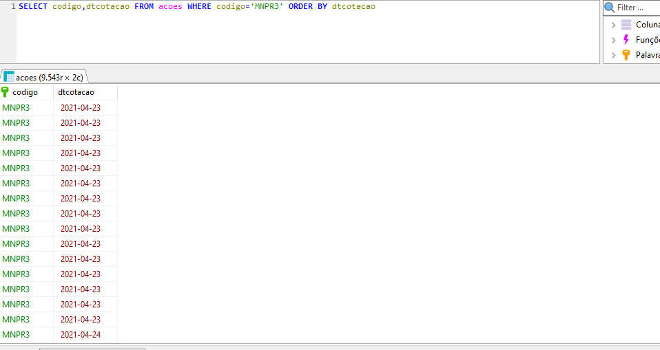 Testei como vc disse, mas está retornando um resultado estranho. Veja as imagens anexas. MNPR3 tem cotação de hoje, mas está retornando a data 2020-05-29.