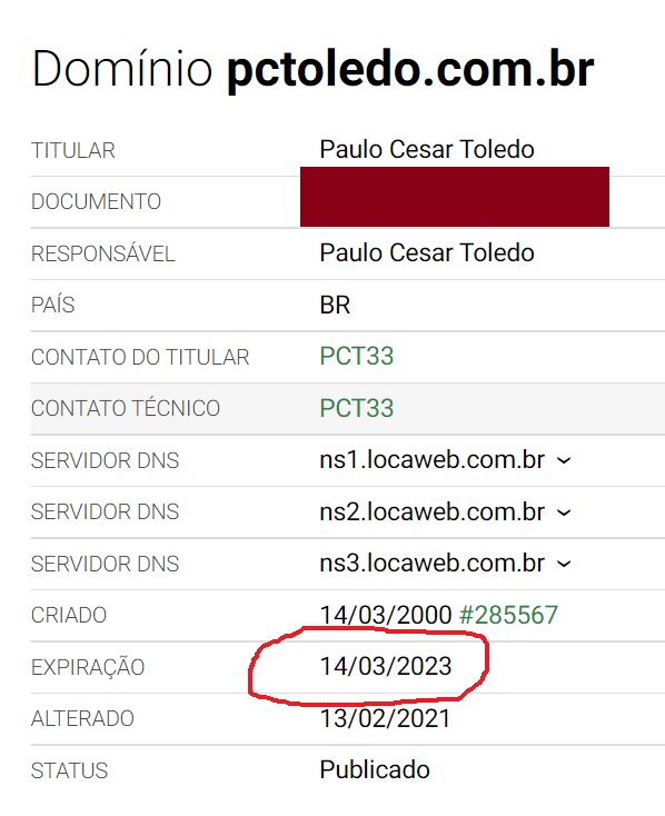 Sobre o registro.br o correto e efetuar um pagamento por mais 10 anos.