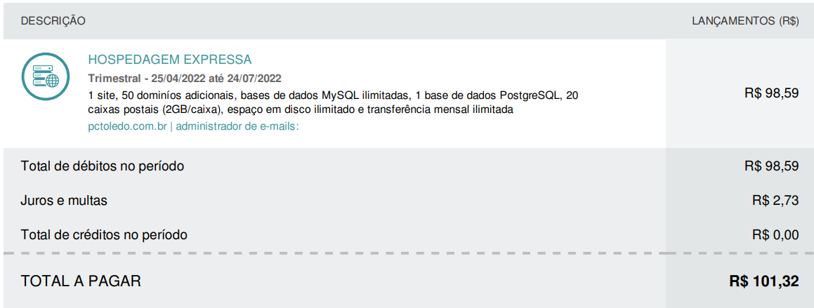 Em valores atuais, seriam então uns R$800,00 para a hospedagem anual e registro por 10 anos.