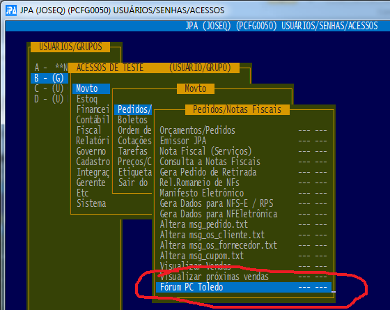 - montagem do menu conforme senha de acesso