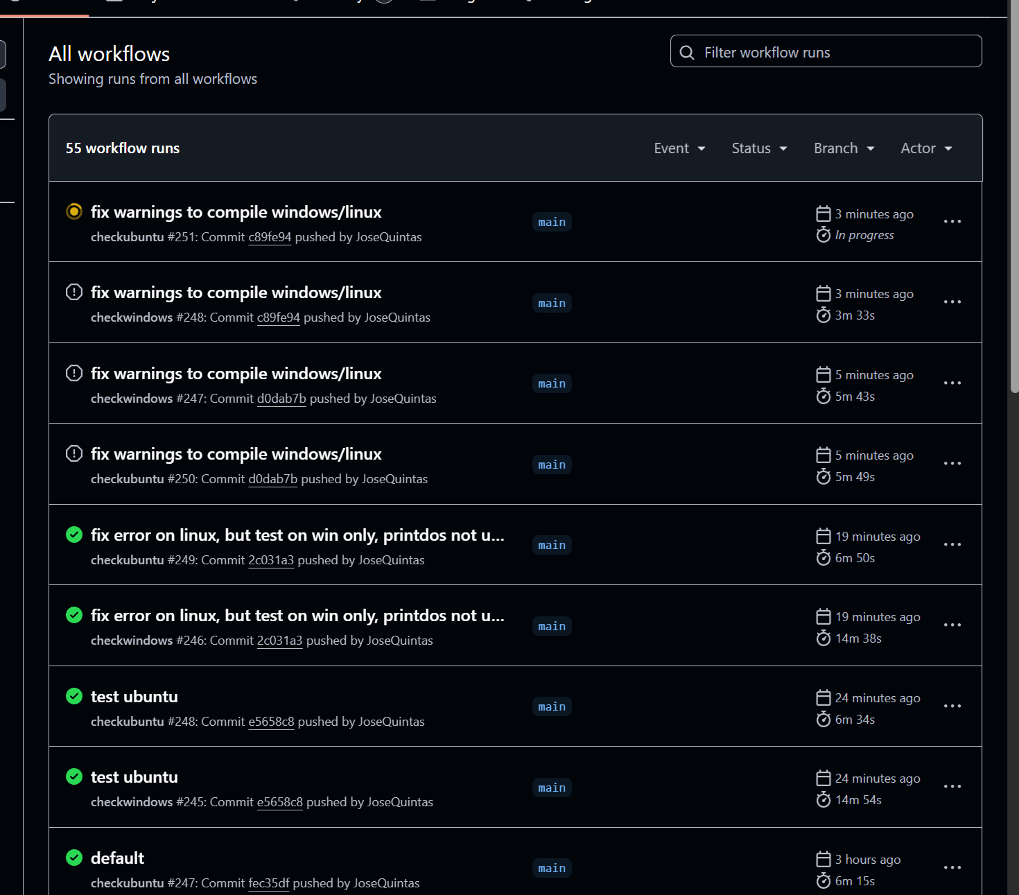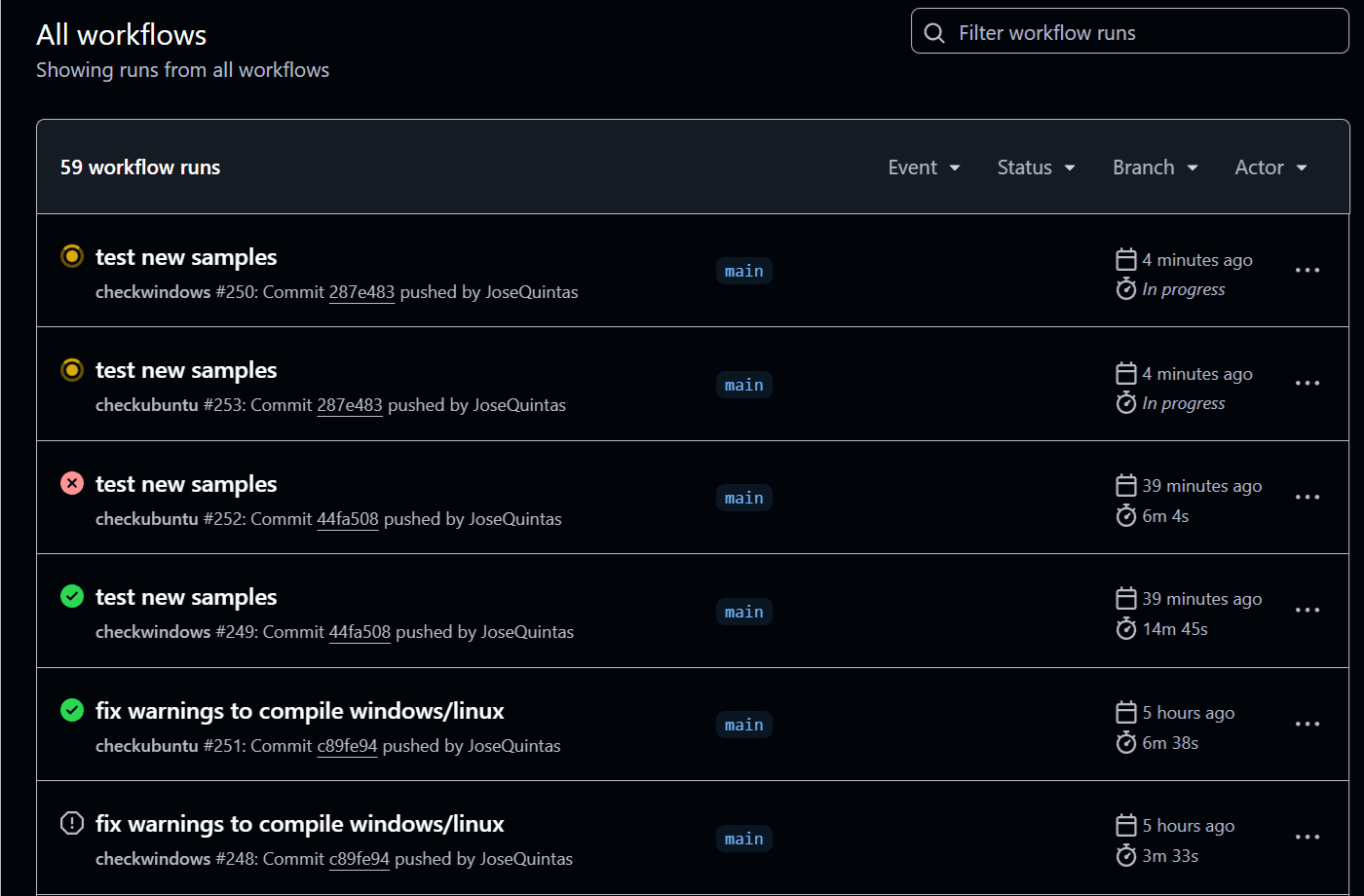 No momento o github está compilando tudo nos dois, sem erros.