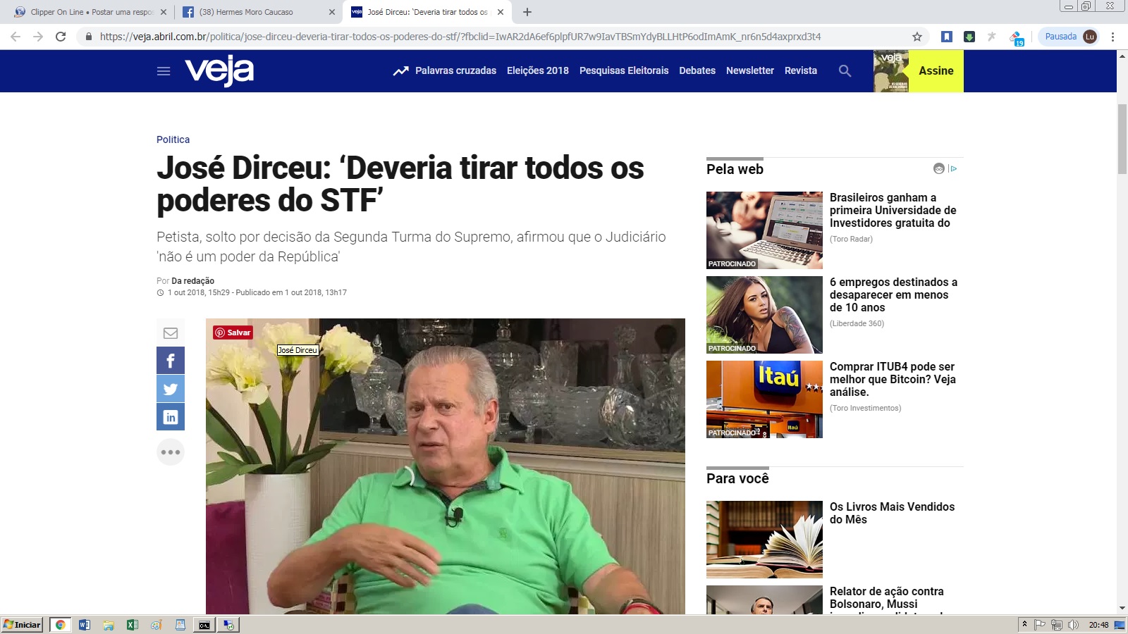 Disse José Dirceu: “Primeiro, deveria tirar todos os poderes do Supremo e ser só Corte Constitucional. O Judiciário não é poder da República.