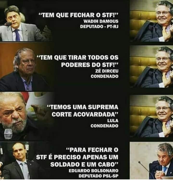 Entretanto, se o "bravateiro" for alguém de Direita, a declaração deixa de ser bravata e passa a ser "prenúncio de golpe e atentado a democracia"