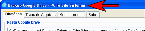 Neste exemplo no nome seria "Backup Google Drive - PCToledo Sistemas"