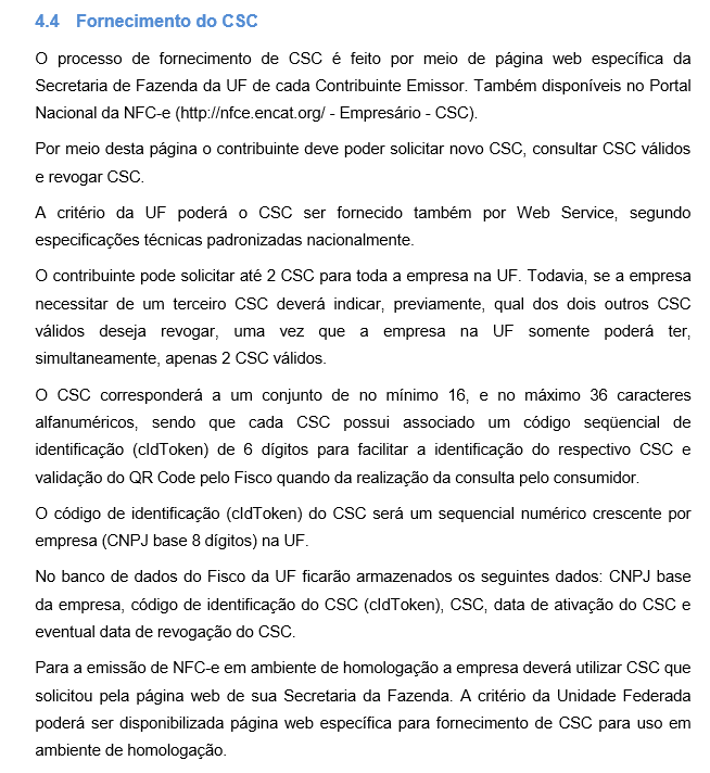 Antes de obter o CSC, é necessário efetuar o credenciamento presencial mediante os documentos descritos aqui. Após, é possível acessar o site Sefaz Online e emitir o CSC no menu "NFC-e".